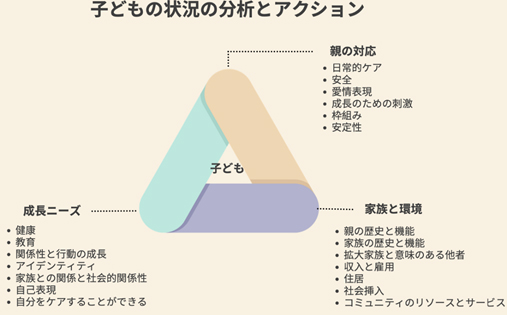 それを具体的に実施するために保健省は「子どもにとって必要なこと」の指標を示し、これが全国のアセスメントで利用されている。日本では虐待の有無についてのアセスメントが行われるが、フランスにおいては、子どもに必要なことが満たされているか親と子どもそれぞれと話し合い、どのようによりよく応えていくことができるかを模索する。子どもも一緒に話し合いを行うことは、子どもの権利条約第12条において「自分に関わる全ての問題について自由に意見を表明する権利」が保障されると書かれているからである。連携機関との会議なども親子に知らせず開催することは決してない。このような土台となる考え方が明確に共有されることで「母親は子どもが父親に会うことを望んでいない」「母親は子どもを塾に行かせたがっているが子どもは拒否している」などの争いに支援者が巻き込まれることなく親子の話し合いを支えることができる。