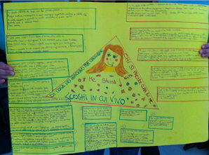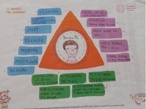 さらに、支援を開始するときには、ニーズに応えることと同時に、親子のことを包括的に支えられるようサポートプランをもとに親子と支援の方向性を話し合う。フランスにおいてはすでに印刷されたものに書き込んでいく方法をとることが多いが、イタリアでは子どもたちが工夫をして誇らしげに作成している。こちらも徐々に書き込み完成させていく。
