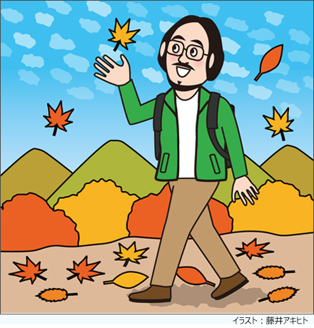 秋の野山を歩こう。空は青くて、そこには小さな雲が群れを成すように浮いている。イワシ雲だね。