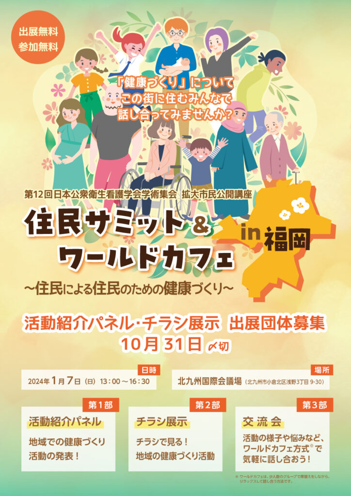 住民サミット&ワールドカフェ in 福岡<第12回日本公衆衛生看護学会学術集会 拡大市民公開講座>(2024/1/6~1/7)